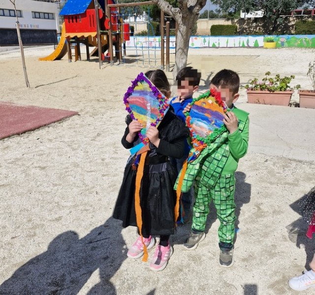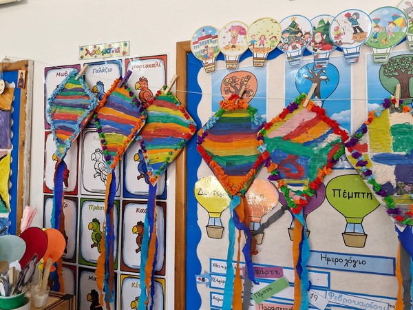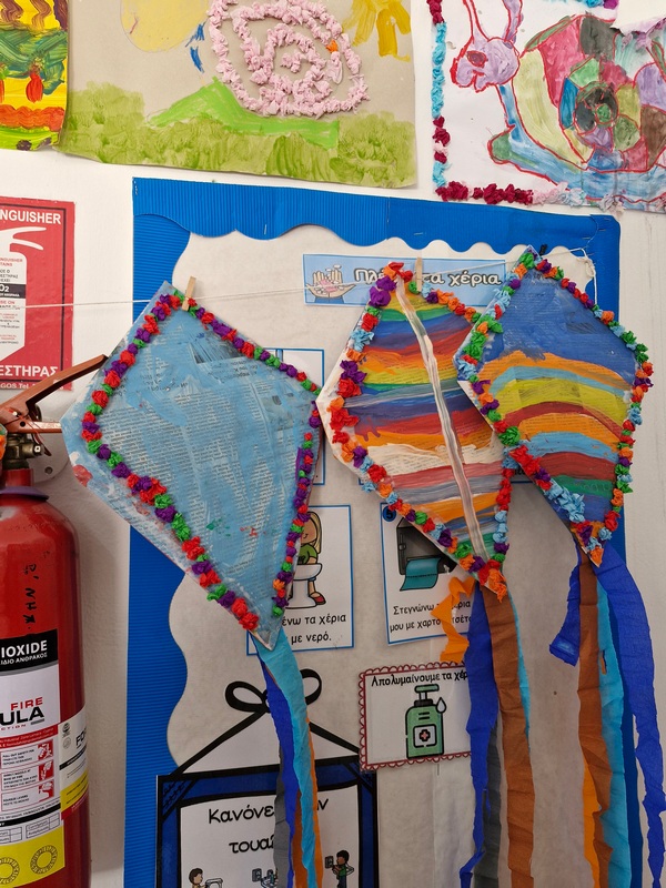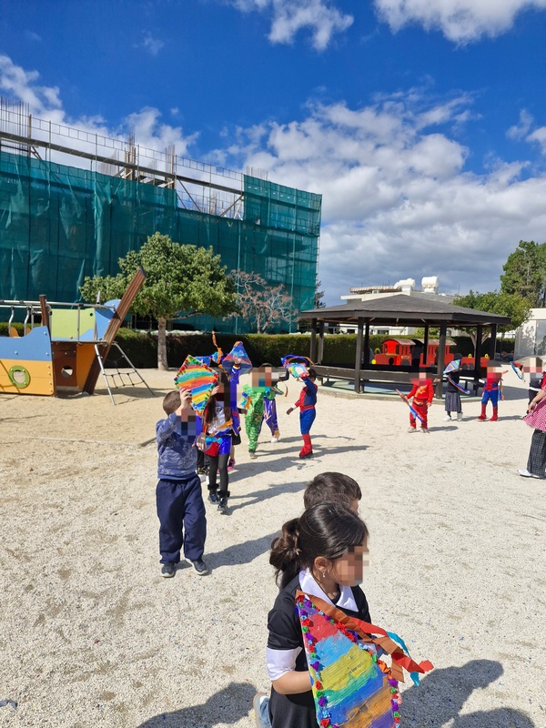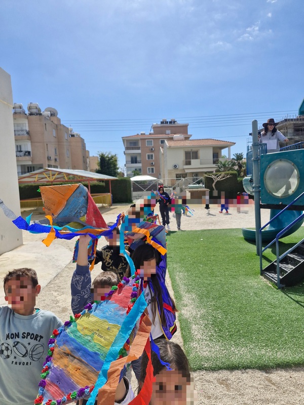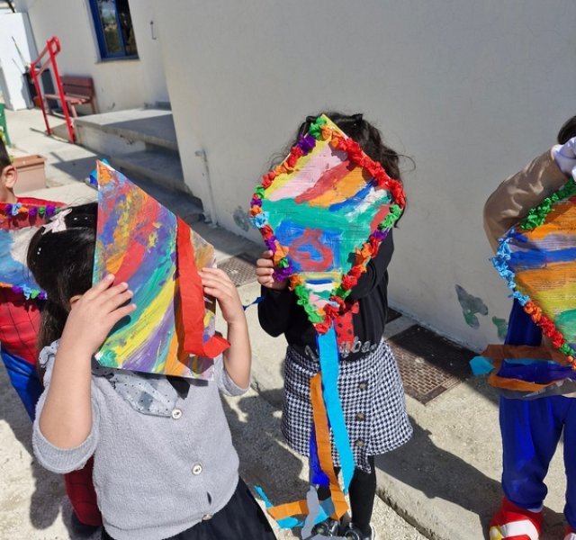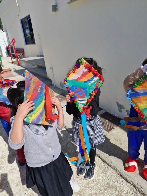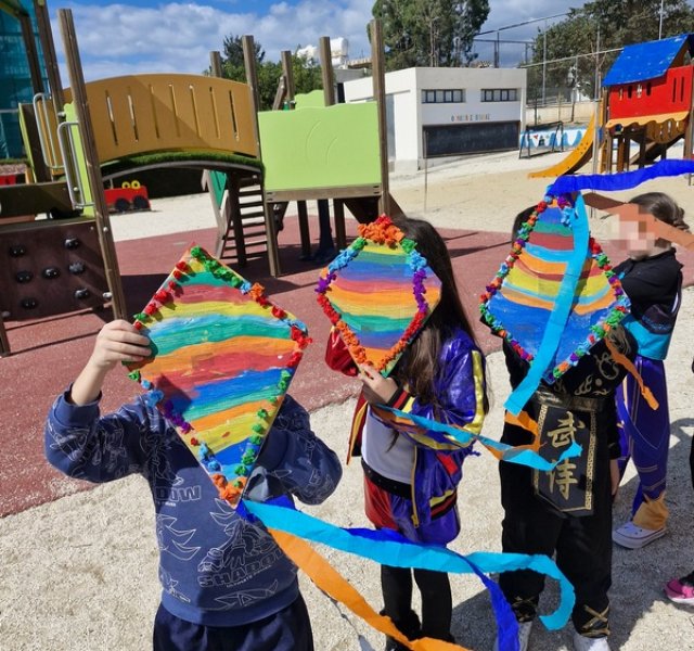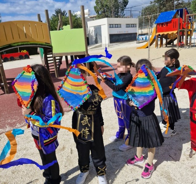Τα παιδιά χόρεψαν παρέα με τον χαρταετό τους και μετά όλα μαζί τον "πέταξαν" στην αυλή του σχολείου τους.