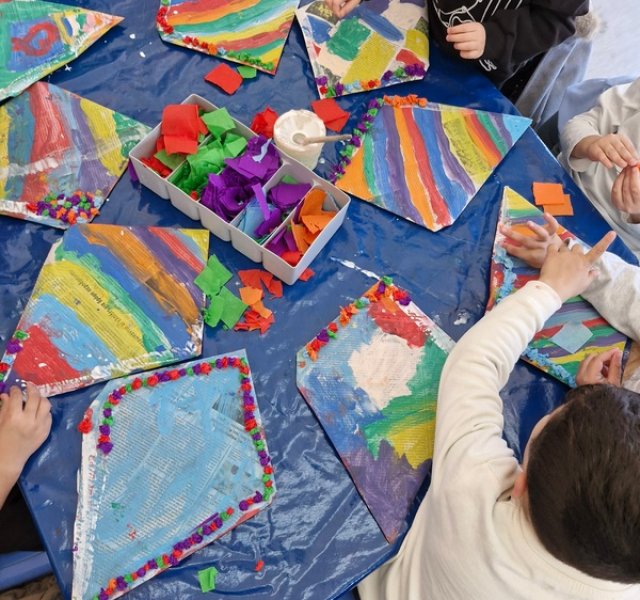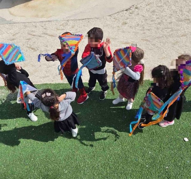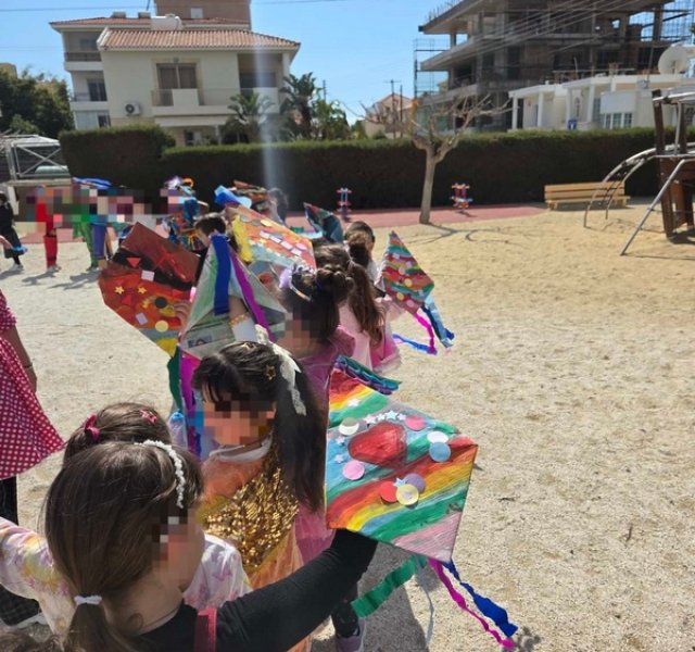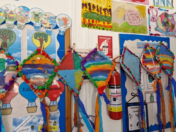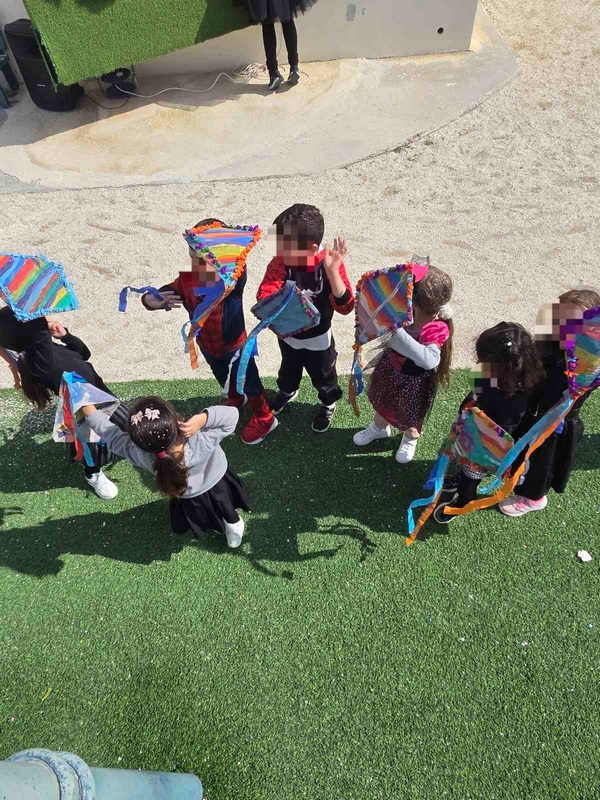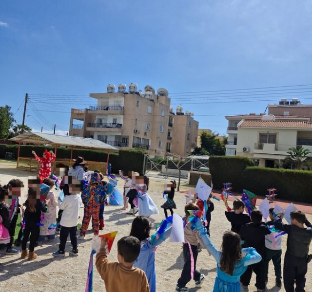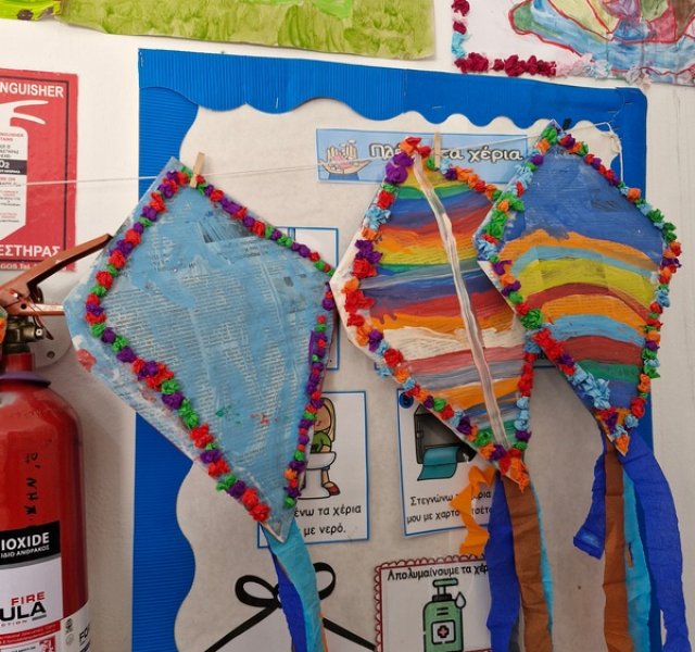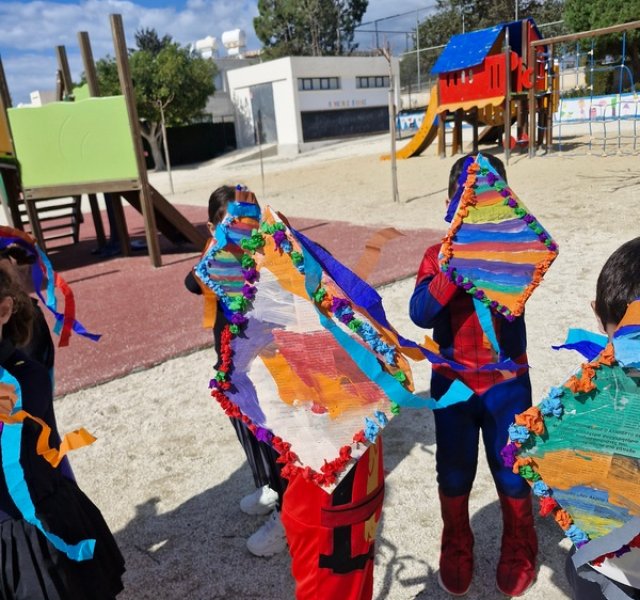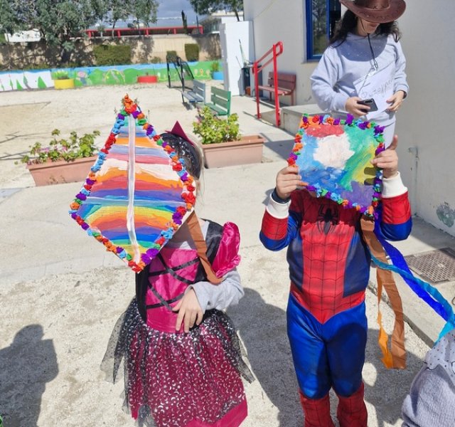 Τα παιδιά χόρεψαν παρέα με τον χαρταετό τους και μετά όλα μαζί τον "πέταξαν" στην αυλή του σχολείου τους.