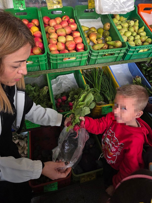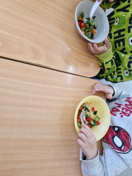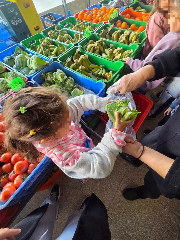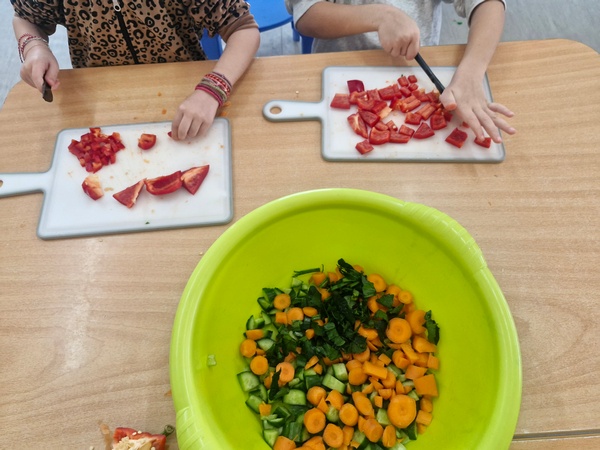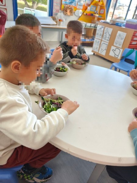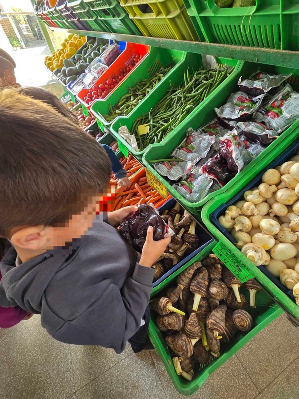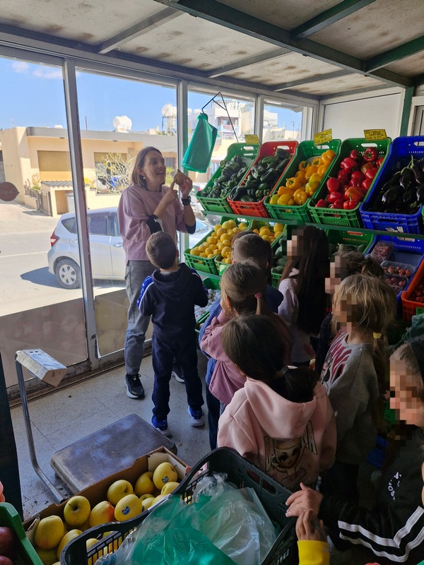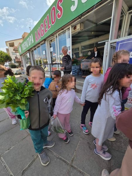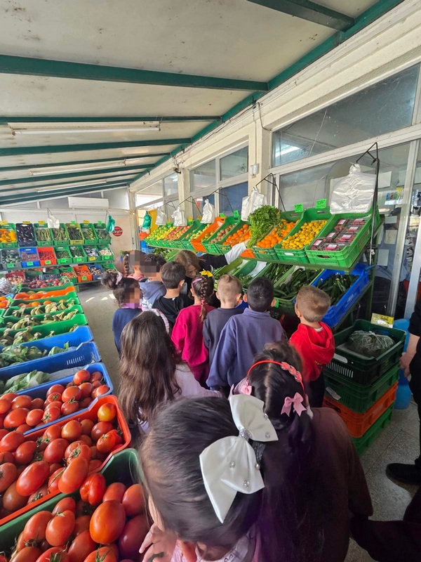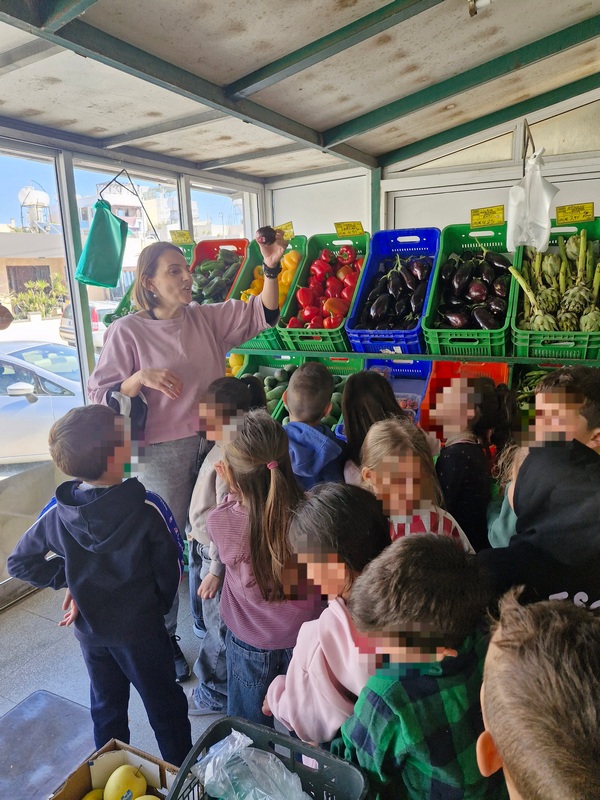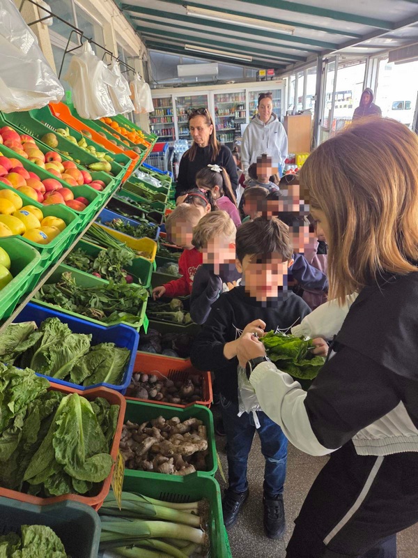 Όλη τη βδομάδα με αφόρμηση την κυρά Σαρακοστή μιλάμε για τα λαχανικά και τι καλύτερο από το να επισκεφθούμε την φρουταρία-λαχαναγορά στο χωριό μας και να δούμε την πληθώρα των λαχανικών. Τα παιδιά ανα τάξεις επισκέφθηκαν το κατάστημα του κυρ Άγγελου και αφού είδαν τα λαχανικά, τα άγγιξαν, έγιναν μικροί δημοσιογράφοι και ρώτησαν διάφορες ερωτήσεις-απορίες τον κύριο Άγγελο. Ακολούθως, ψώνισαν διάφορα λαχανικά και τι καλύτερο από το να τα δοκιμάσουν κιόλας! Μια νόστιμη σαλάτα φτιάχτηκε από μικρά χεράκια! Τα παιδιά πήραν στα χέρια τους σανίδια και μαχαίρια και έκοψαν τα λαχανικά για να ετοιμάσουν την σαλάτα τους! Την απόλαυσαν και διασκέδασαν με όλη τη διαδικασία!