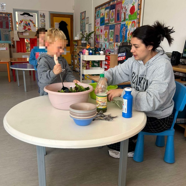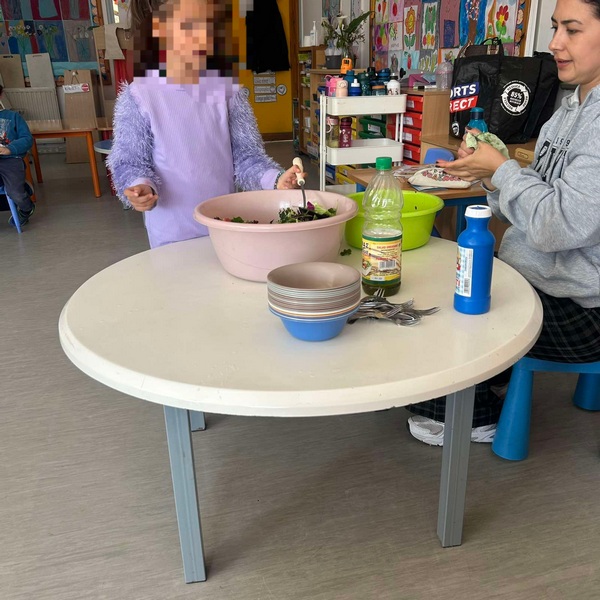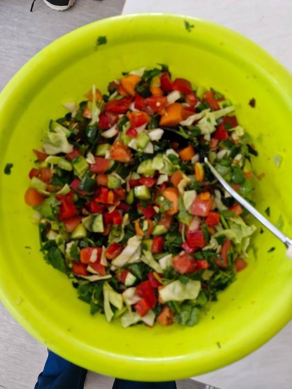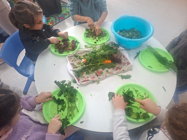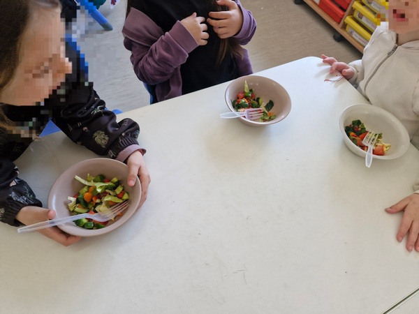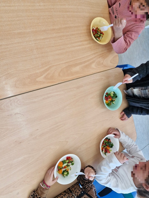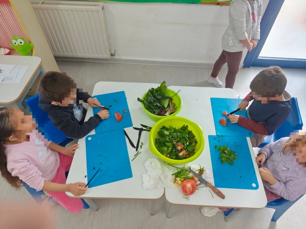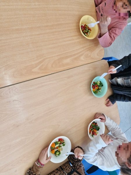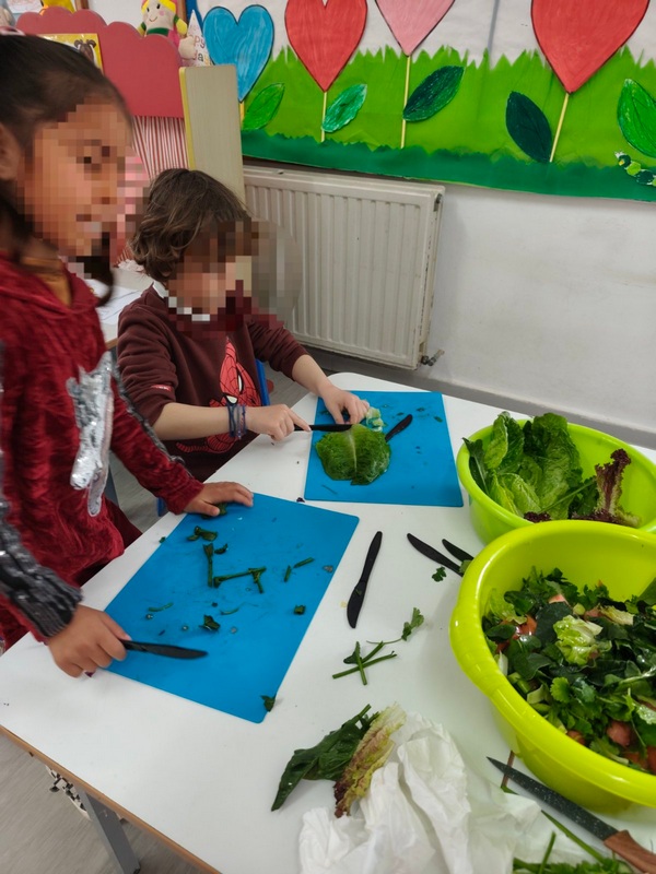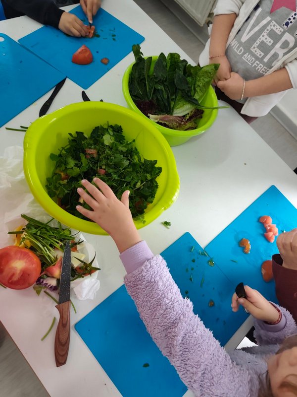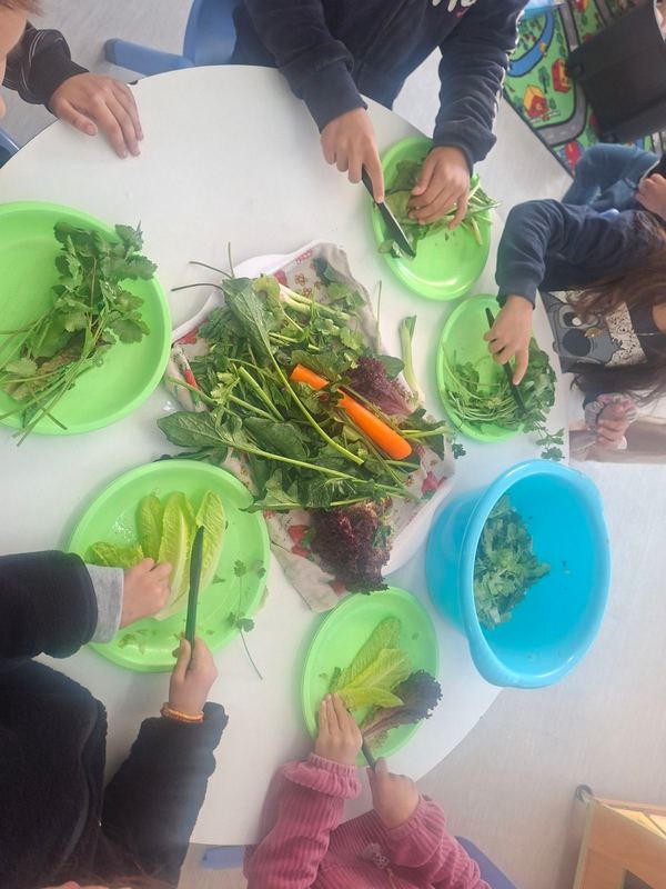 Όλη τη βδομάδα με αφόρμηση την κυρά Σαρακοστή μιλάμε για τα λαχανικά και τι καλύτερο από το να επισκεφθούμε την φρουταρία-λαχαναγορά στο χωριό μας και να δούμε την πληθώρα των λαχανικών. Τα παιδιά ανα τάξεις επισκέφθηκαν το κατάστημα του κυρ Άγγελου και αφού είδαν τα λαχανικά, τα άγγιξαν, έγιναν μικροί δημοσιογράφοι και ρώτησαν διάφορες ερωτήσεις-απορίες τον κύριο Άγγελο. Ακολούθως, ψώνισαν διάφορα λαχανικά και τι καλύτερο από το να τα δοκιμάσουν κιόλας! Μια νόστιμη σαλάτα φτιάχτηκε από μικρά χεράκια! Τα παιδιά πήραν στα χέρια τους σανίδια και μαχαίρια και έκοψαν τα λαχανικά για να ετοιμάσουν την σαλάτα τους! Την απόλαυσαν και διασκέδασαν με όλη τη διαδικασία!