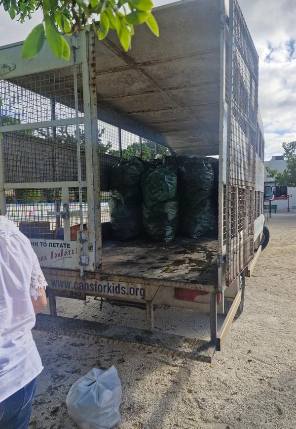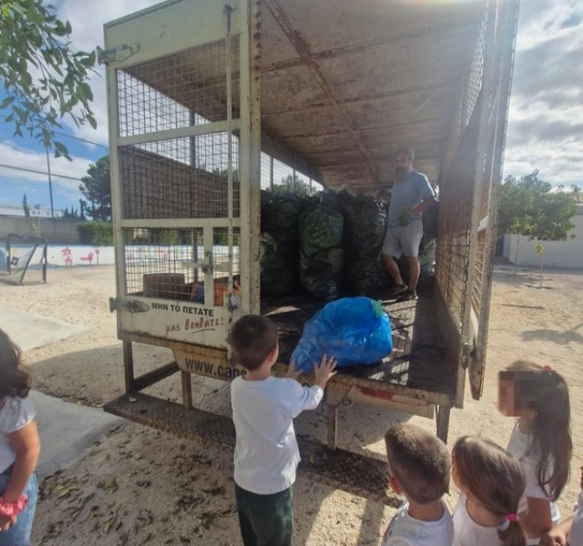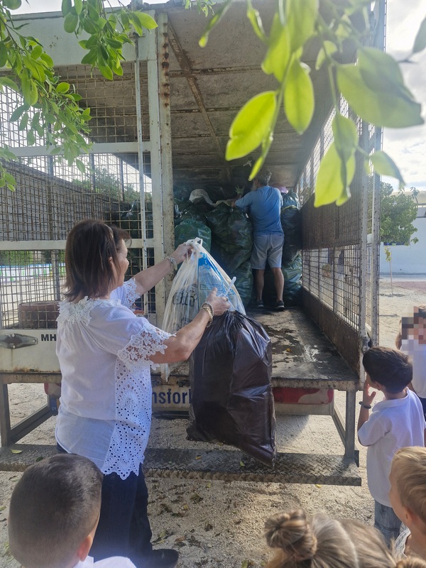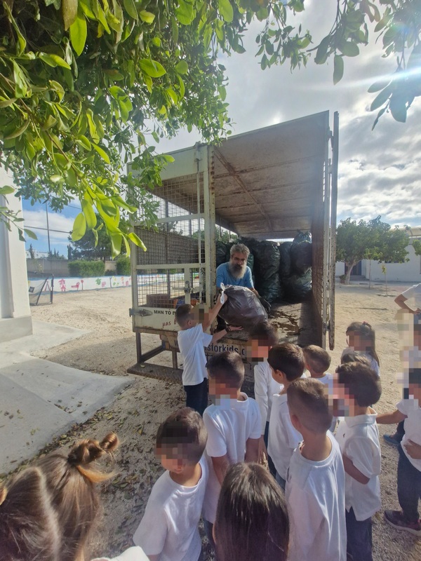 Σήμερα 27/10/2025 το φορτηγό παραλαβής έφτασε στο νηπιαγωγείο μας. Αξίζει να σημειωθεί ότι είναι στο πρώτο νηπιαγωγείο με το οποίο ξεκινάει την περισυλλογή μιας και τα παιδιά έδειξαν τόσο ενθουσιασμό και ζήλο που κατάφεραν να μαζέψουν τόσα πολλά.