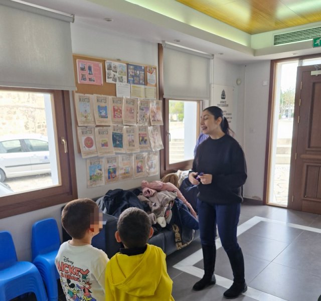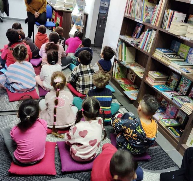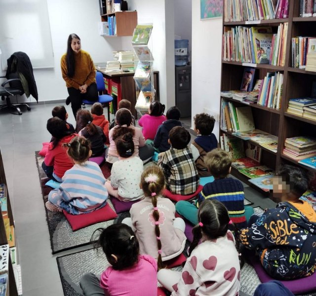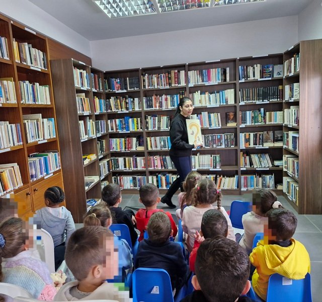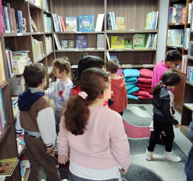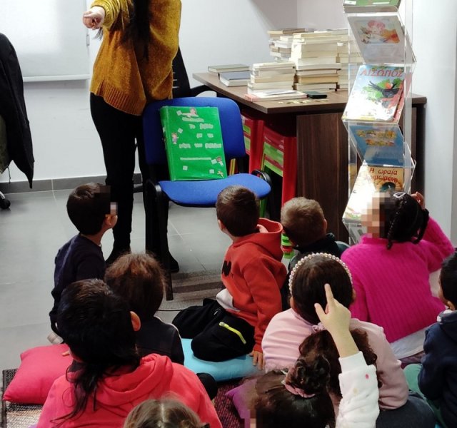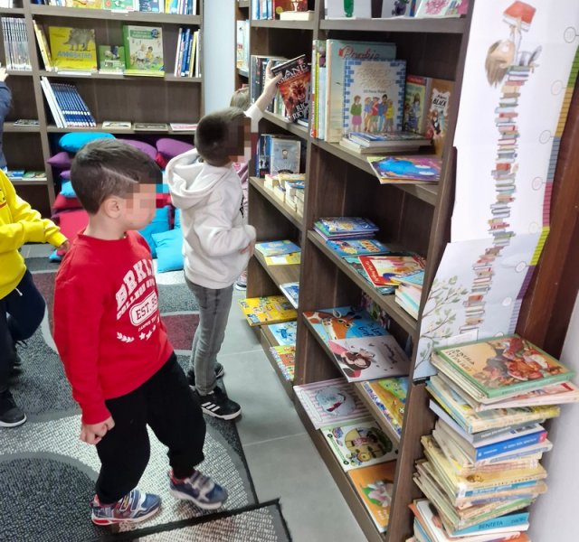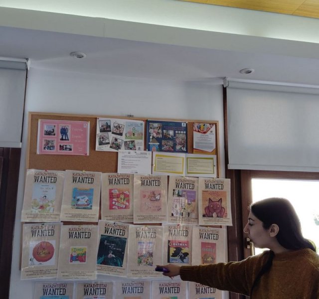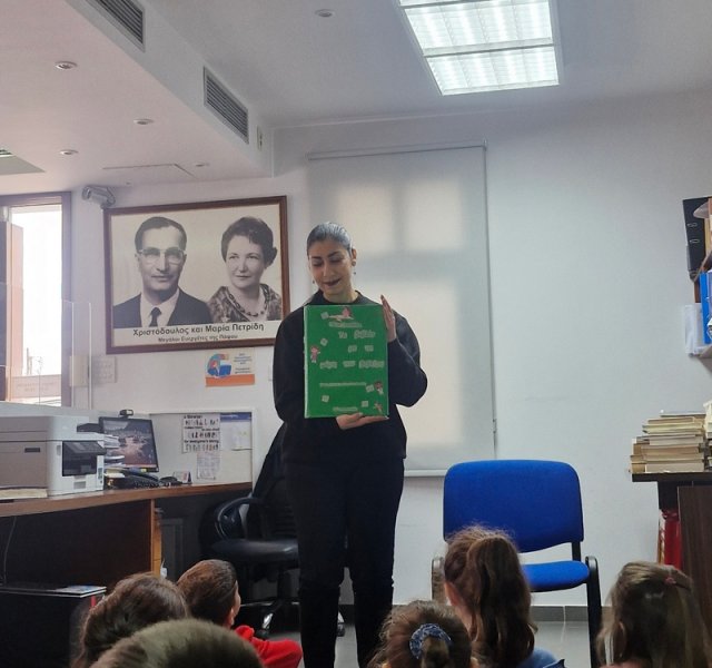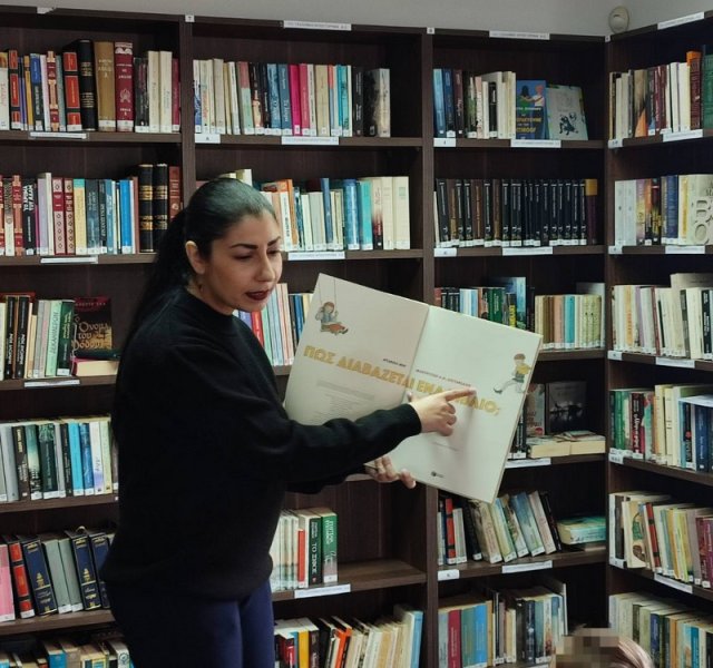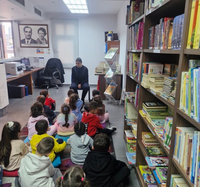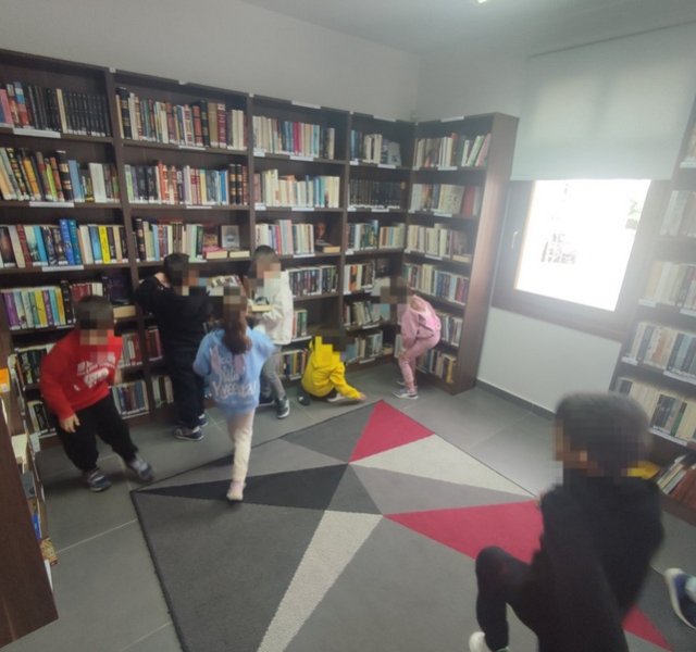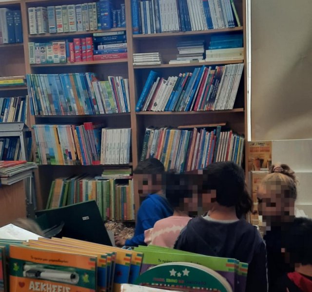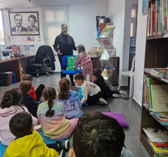 Κάθε μέρα ένα τμήμα επισκέπτεται τη βιβλιοθήκη και η κυρία Ιωάννα προσφέρει στα παιδιά μια ανεπάναληπτη εμπειρία. Δείχνει στα παιδιά τη βιβλιοθήκη, τα ξεναγεί σε κάθε ράφι και τους ταξιδεύει στη χώρα των βιβλίων μέσα από παιχνίδια, αφήγηση και φαντασία. Επιπλέον, τα παιδιά είχαν την ευκαιρία να επισκεφθούν και το βιβλιοπωλείο της κυρίας Σταυρούλας και εκεί εστίασαν στις διαφορές του βιλιοπωλείου με τη Βιβλιοθήκη.