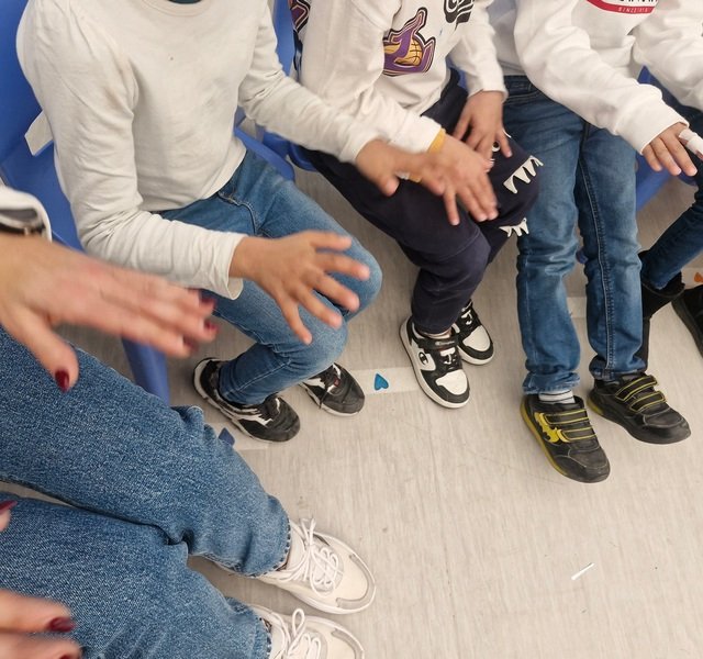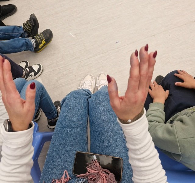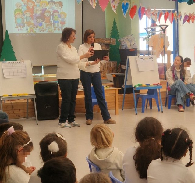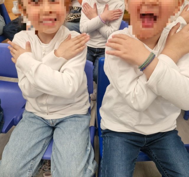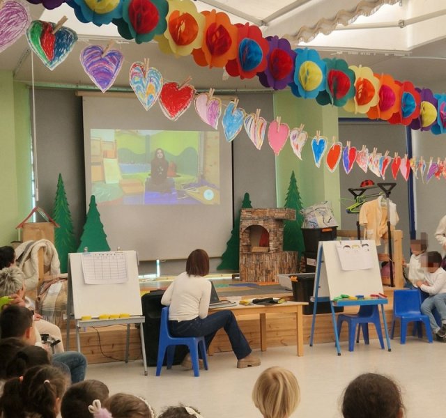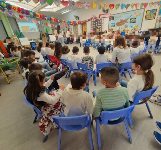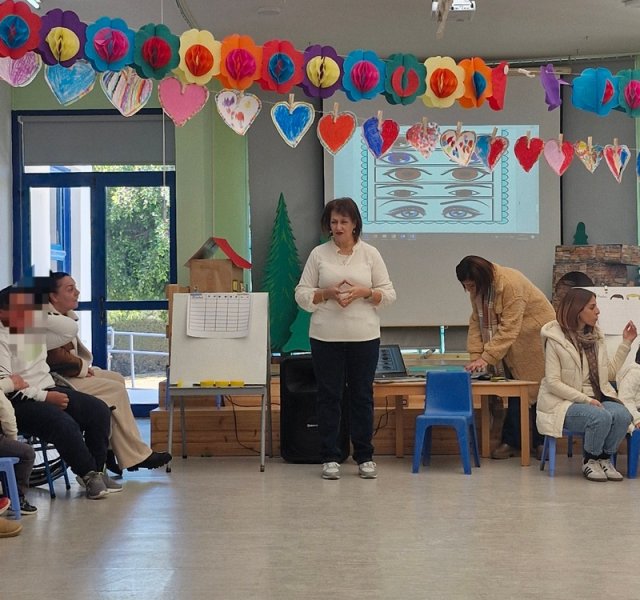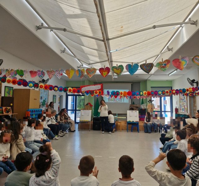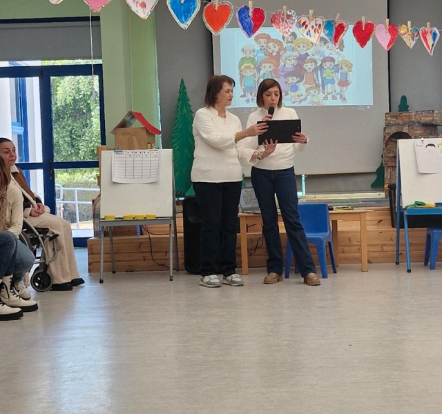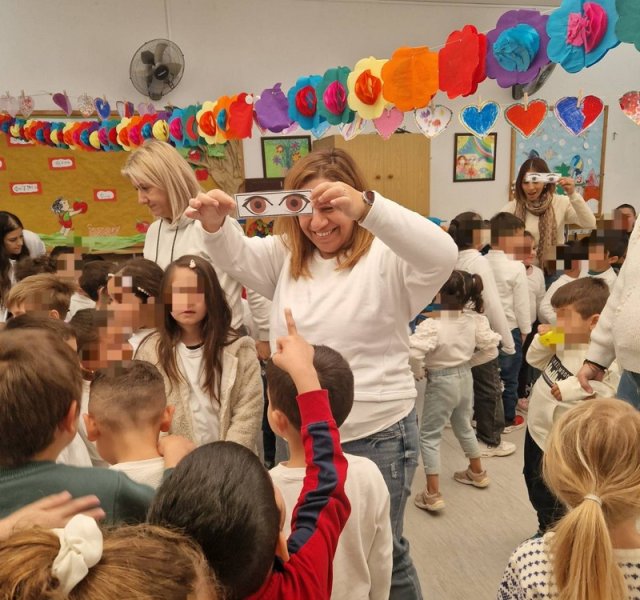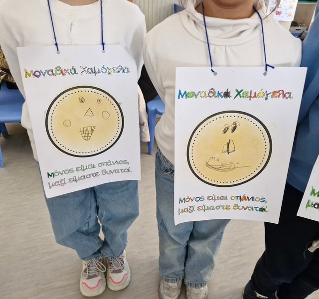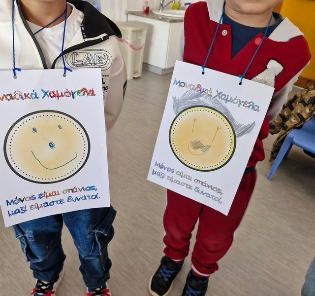 Τα παιδιά του νηπιαγωγείου καλωσόρισαν στο σχολείο τους τα παιδιά από το Ειδικό σχολείο και μαζί έγιναν ένα. Έπαιξαν παιχνίδια, χωρίστηκαν σε ομάδες, τραγούδησαν, έπαιξαν μουσικοκινητικά παιχνίδια και το πιο σημαντικό έγιναν φίλοι! Όλοι μαζί μπορούμε τα πάντα!