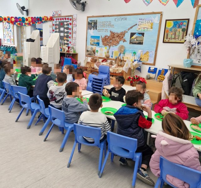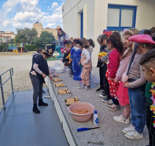 20 Φεβρουαρίου, μέρα τσικνίσματος και διασκέδασης! Τα παιδιά διασκεδάζουν τρώγοντας σουβλάκια στην μεγάλη αίθουσα. Μετά παίζουν μαζί με τις δασκάλες τους στην αυλή παραδοσιακά κυπριακά παιχνίδια και τρώνε πουρέκια! Καλή σαρακοστή!