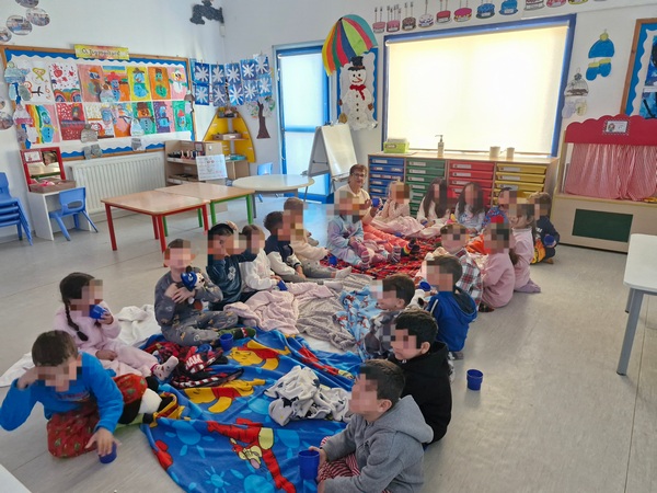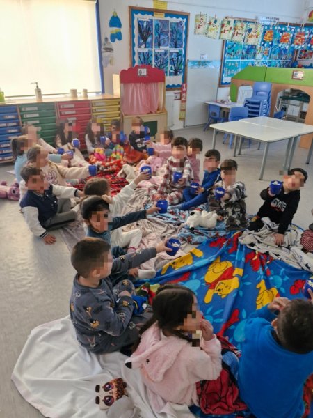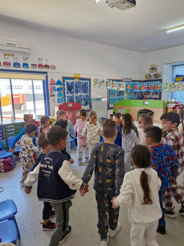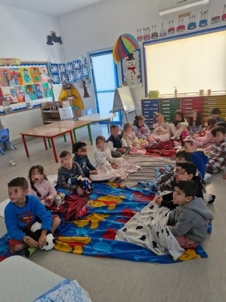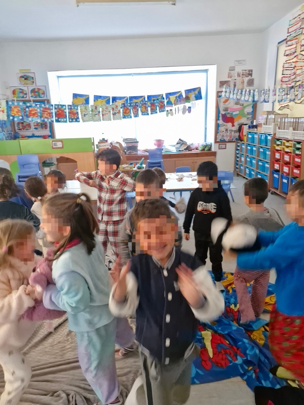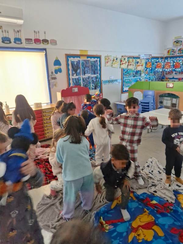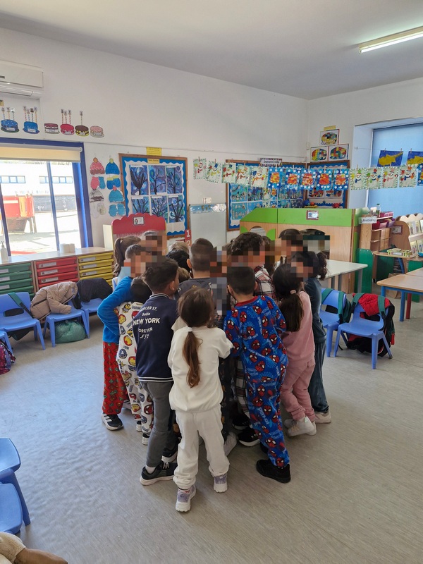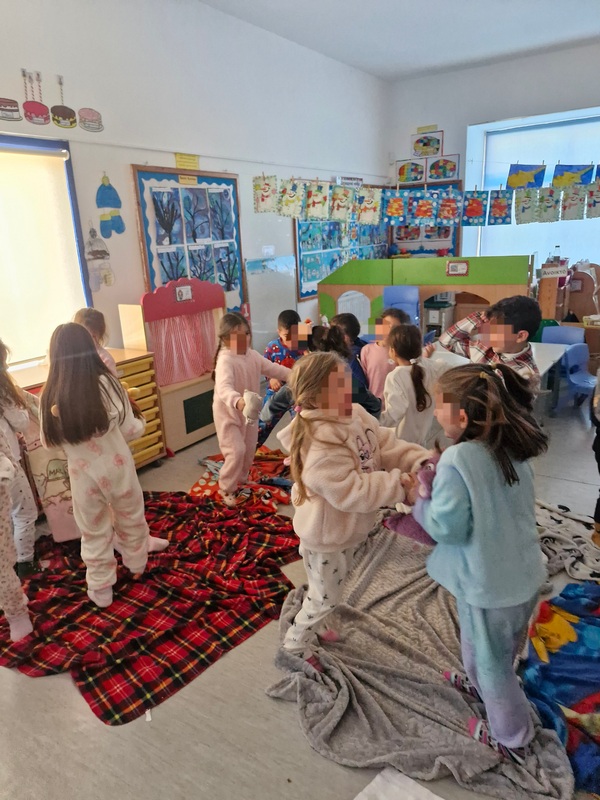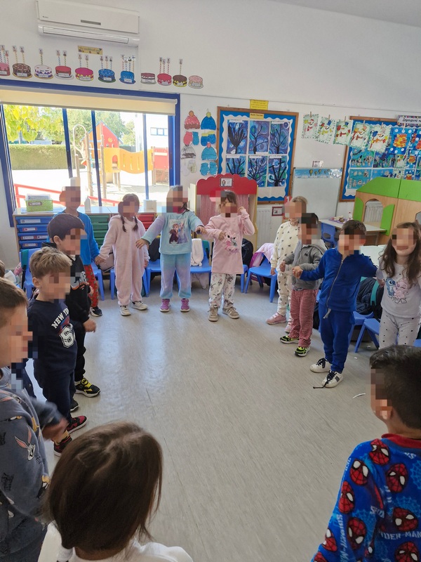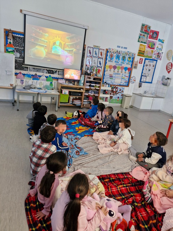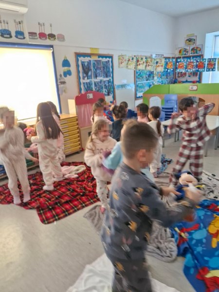 Τα παιδιά και το προσωπικό του σχολείου έβαλαν πιτζάμες και έκαναν διάφορες παιχνιδιάρικες δραστηριότητες. Μέχρι και οι μεγάλοι ήθελαν να γίνουν και πάλι παιδιά του νηπιαγωγείου και να ζήσουν τέτοιες στιγμές! Παρακολούθησαν ταινία συνοδεύοντάς την με ποπ κορν, χόρεψαν με τις κουβέρτες και τα αρκουδάκια τους, ξάπλωσαν για ηρεμία και χαλάρωση και τραγούδησαν τραγούδια ένα σωρό!