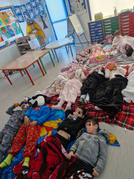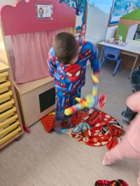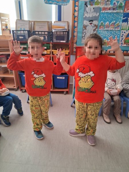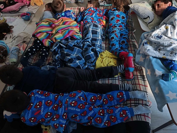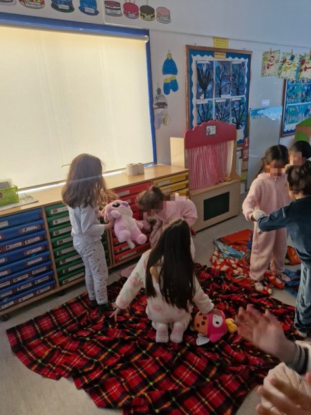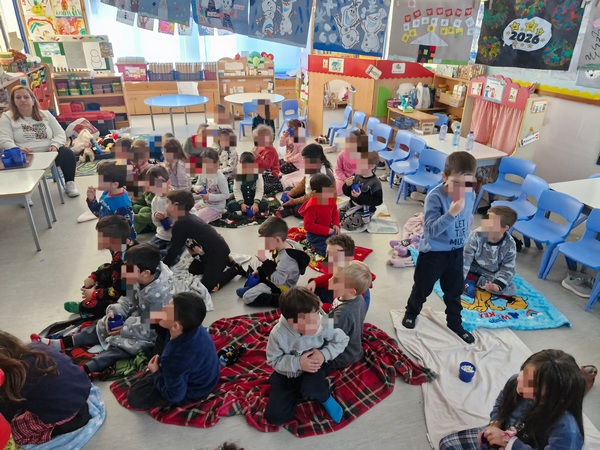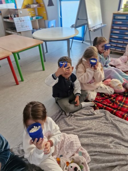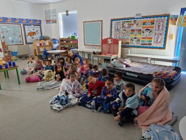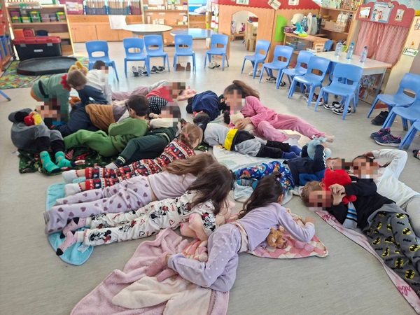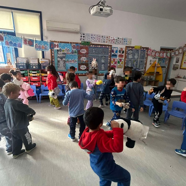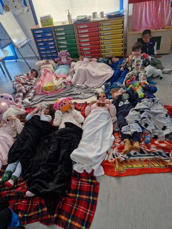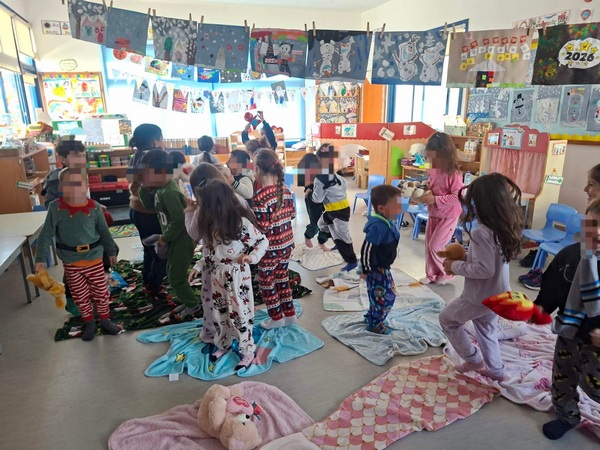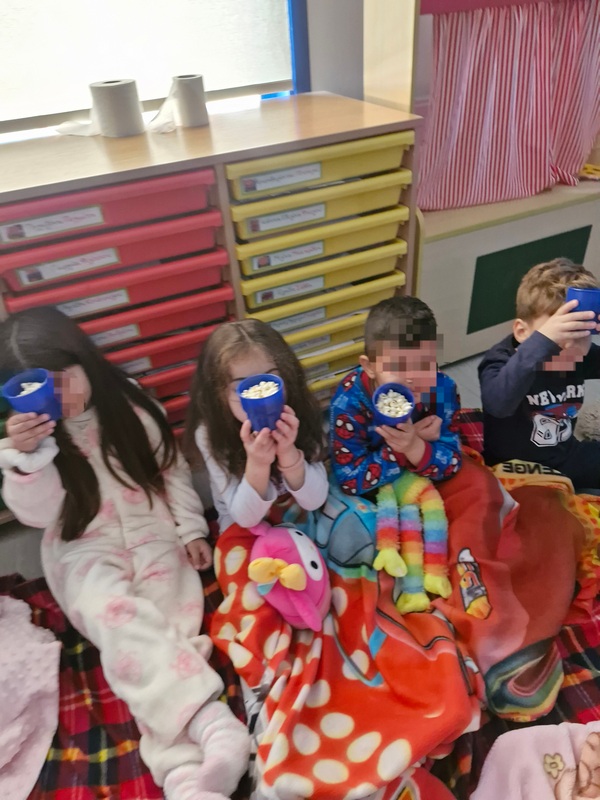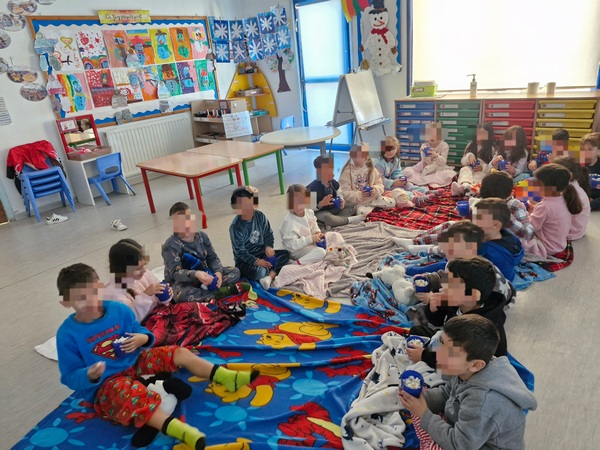 Τα παιδιά και το προσωπικό του σχολείου έβαλαν πιτζάμες και έκαναν διάφορες παιχνιδιάρικες δραστηριότητες. Μέχρι και οι μεγάλοι ήθελαν να γίνουν και πάλι παιδιά του νηπιαγωγείου και να ζήσουν τέτοιες στιγμές! Παρακολούθησαν ταινία συνοδεύοντάς την με ποπ κορν, χόρεψαν με τις κουβέρτες και τα αρκουδάκια τους, ξάπλωσαν για ηρεμία και χαλάρωση και τραγούδησαν τραγούδια ένα σωρό!